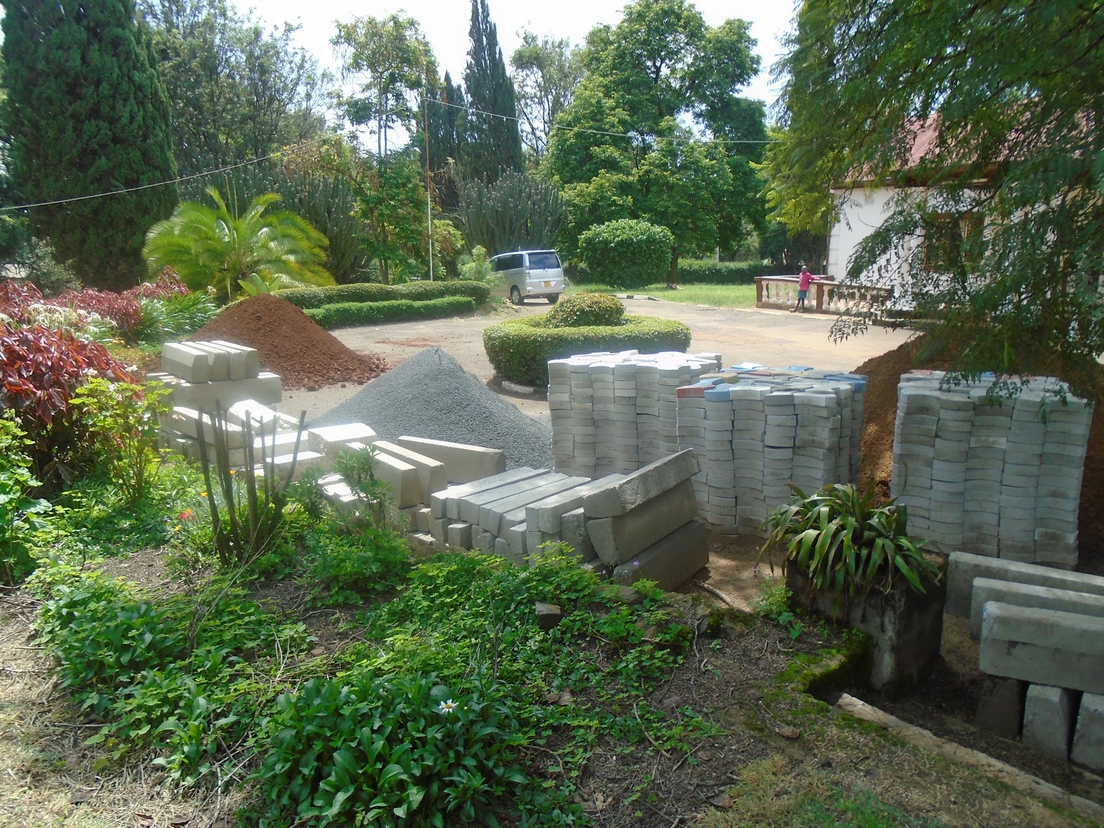 Some of the work to be done is upon a main path way that links Testimony House with The Office and also with Jacaranda compound across the road. It also passes in front of Green Cottage. in this photo Green Cottage, our little home, is on the right, and we are looking up towards the Office and the Main Drive way out. The patio and path were both put down 21 years ago, and are crumbling. One or two, including me and a few other elderly visitors have taken tumbles and so there IS a need to do something to make its surface safe..... Below to the left is a view from the office steps and down to Green Cottage